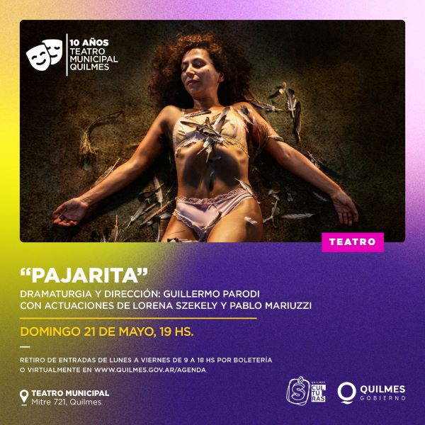 El Domingo 21 a las 15 en Plaza Suiza, (Crámer y Uriburu), en el ciclo “Cultura en los Barrios”, se presentará “La Clap”, grupo circense de destreza, en malabares, monociclo, y acrobacia. Para finalizar a las 20, la agenda finaliza en el Teatro Municipal con la obra “Pajarita”. Se cumplen 90 años del estreno de 300 millones, Guillermo Parodi explora el puente entre aquel mundo y el presente. Con actuación de Lorena Szekely y de Pablo Mariuzzi.