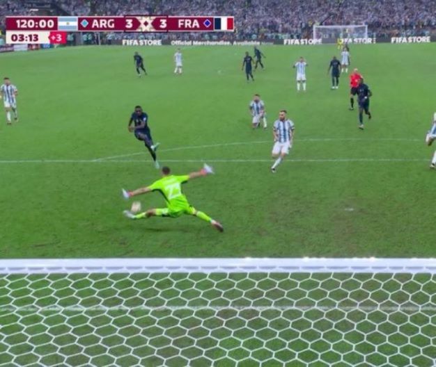 Como si esto fuese poco, la Argentina pudo haber perdido en el tercer minuto de descuento del tiempo suplementario, cuando Kuolo Mani, quedó cara a cara ingresando al área con el Dibu; y Emiliano Martínez estirándose para achicar el arco, con la pierna izquierda salvó el cuarto gol galo.