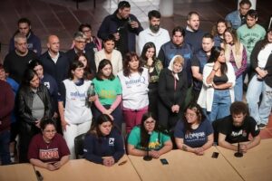 POR ENTRE NOS. En esta mañana se realizó la conferencia de prensa, en la UNQ. Los y las estudiantes narraron las agresiones sufridas por militantes libertarios infiltrados, en plena asamblea.