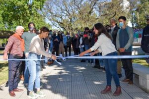 IMPULSANDO OBRAS. Mayra Mendoza y Ceci Soler inauguraron la Plaza Yrigoyen, uno de los puntos m谩s transitados de la ciudad. la intendenta rescat贸, la recuperaci贸n de un lugar abandonado.