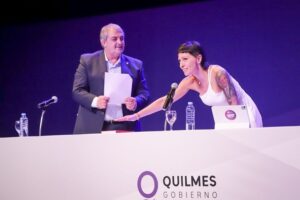 Mayra Mendoza este martes asumi贸 su segundo mandato al frente del distrito habl贸 de la coyuntura y recibi贸 el diploma de mano de su hija y de sus padres.