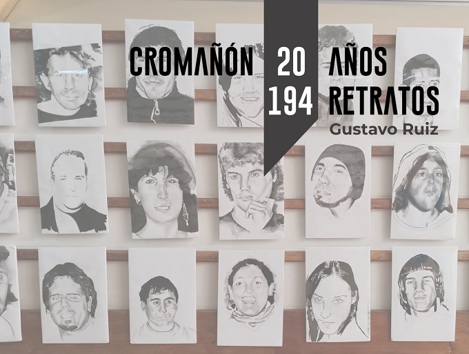 Hasta el 25 de octubre de 2024 se puede visitar en la Sala Galería de la Universidad Nacional de Quilmes (UNQ) la exposición “Cromañón 20 años. 194 retratos” A partir de fotografías analógicas de las víctimas de la masacre de Cromañón, Gustavo Ruiz dibuja con tinta sus rostros en blanco y negro y los expone, generando una nueva capa al archivo visual y afectivo de los familiares de las víctimas.