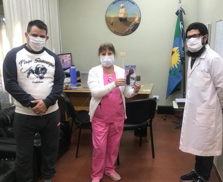 En el marco de la lucha contra la propagación del virus Covid-19, una de las herramienta importantes, es la nueva pistola (termómetro) laser que puede tomar la temperatura corporal, manteniendo una distancia prudencial entre el profesional médico y la persona a la que se le está haciendo el chequeo. “Creemos que es un aporte que podemos hacer, para cuidar a quienes nos cuidan todos los días exponiendo su propia salud” expreso López y agregó “Esto es fruto de las gestiones que realizamos y es a partir del aporte de varios empresarios, del Grupo Realizar y la Secretaria de Derechos Humanos, que podemos acceder y donar este termómetro infrarrojo para el personal del dispensario municipal.