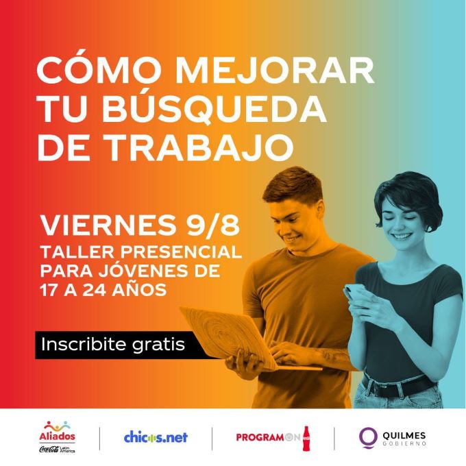 El Municipio de Quilmes informa que en una acción articulada con Coca-Cola Reginald Lee, Coca-Cola de Argentina y la Asociación Civil Chicos.net, está abierta la inscripción a los talleres de inserción laboral ProgramON. Habrá dos fechas disponibles: el viernes 9, de 15 a 16.30, en Quilmes TEC sede La Bernalesa (Martín Rodríguez y Lamadrid, Quilmes Oeste); y el sábado 10, de 10 a 11.30, en el CIC Santo Domingo (Bermejo 1099, Bernal Oeste).