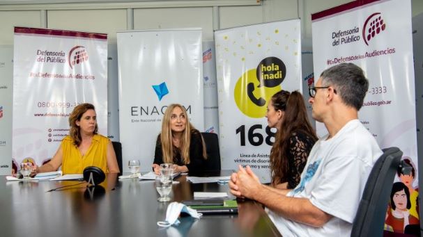 La asesora del ENACOM, Natalia Blanco, explicó que se llevó a cabo una encuesta al personal que arrojó que el 86% había vivido alguna situación de violencia patriarcal. Claudia Acuña, representante de la Asociación de Periodistas Argentinas, expuso casos concretos de censura y atropello hacía mujeres periodistas y afirmó: “lo viejo no se murió, pero lo nuevo ya nació”, apuntando a un cambio social que ya se está gestando, donde estas conductas comienzan a ser cuestionadas. La representante de Actrices Argentinas, Noemi Frenkel, sostuvo que en los castings, el 66% de las mujeres afirman haber sufrido algún tipo de acoso o violencia sexista y que las actrices ganan un 25% menos que los actores varones.