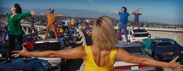 Tiene cierta gracia al bailar aunque se nota que no es su fuerte, pero cumple orgánicamente. Y la otra protagonista es la ciudad de Los Ángeles, escenario del amor de los personajes entre si y el amor por lo que sueñan. La escena inicial de baile en medio de una autopista, que es donde se conocen Mia y Sebastian, es el bautismo de un amor sin igual. La ciudad está muy bien pintada por Chazelle, desde los lugares mas amplios a los mas cerrados.