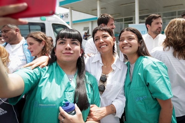 “Es una alegría contar con complementos para poder mejorar el servicio y atención del derecho a la salud, en este caso con dos ecógrafos, uno lo vamos a poder utilizar aquí, en la UPA, junto con esta ambulancia, que es una demanda histórica de este lugar y que llegó con la gestión del gobernador Axel Kicillof, del ministro Kreplak y el trabajo diario de ustedes. Hoy los vecinos y las vecinas van a poder contar con una ambulancia en el UPA. Y el otro ecógrafo, nuestro Secretario de Salud va a definir donde hay mayor demanda y va a ser utilizado en alguno de nuestros centros de atención de salud”, señaló Mayra.