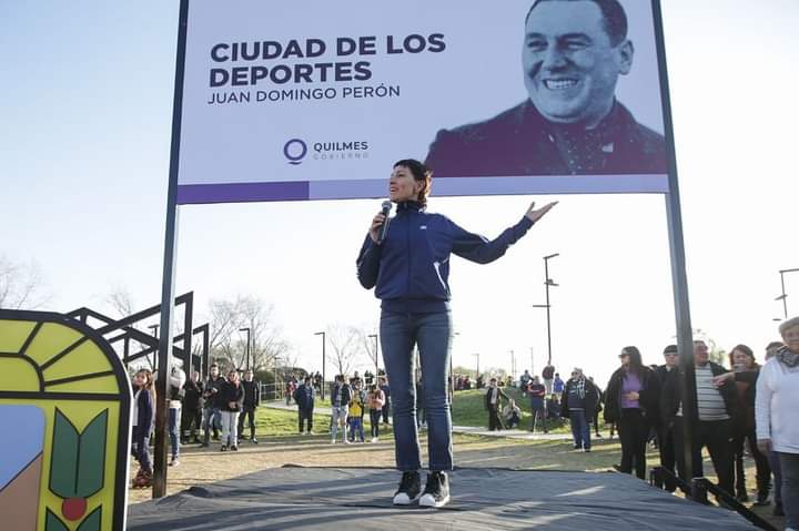 La intendenta de Quilmes y presidenta del Partido Justicialista (PJ) local, Mayra Mendoza, resaltó que “hay que recordar, como decía Néstor Kirchner, a Perón y a Eva cuando se gobierna y durante todos y cada uno de los días de nuestra gestión”, al encabezar este martes en San Francisco Solano el emotivo acto de imposición de nombre del Polideportivo Ciudad de los Deportes, como “Juan Domingo Perón”, al conmemorarse 50 años del fallecimiento del ex Presidente.