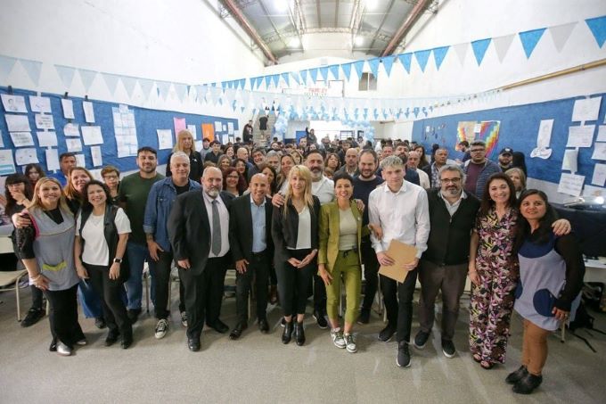 “Sepan que no impusimos el nombre María Eva Duarte de Perón a una escuela, sino que lo eligió democráticamente la comunidad educativa. No es un capricho de un grupo de funcionarios que quieren ‘peronizar’ el mundo. No, esto fue una definición y una votación de quienes forman parte de esta escuela. Nosotros y nosotras somos invitados y agradezco que nos permitan compartir”, resaltó Mayra.
