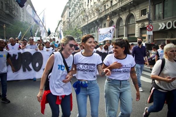 La mandataria siempre tiene un vínculo estrecho con los militantes en cada acto, y siempre se produce un intercambio entre la intendenta y aquellos, aquellas que participan de la movilización.