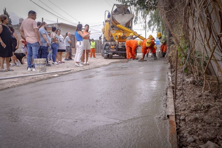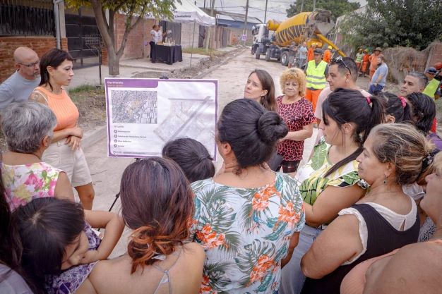 La obra comprende las diez cuadras de pavimento que faltaban en el barrio, que eran calles de tierra o tenían un mejorado en mal estado. Se está haciendo un pavimento de hormigón con cordón cuneta y también, como complemento, se están construyendo las veredas en todo el tramo.