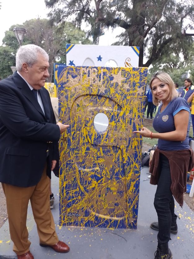 Durante la jornada, en una caravana que convocó a una multitud, de dirigentes, hinchas y socios quienes portaron una bandera al son de “Ritmo Xeneize” (grupo de percusión de la hinchada del club) y las trompetas de los chicos de los talleres barriales del Departamento de Boca. En la Plaza Solís los recibió el Presidente de la institución Jorge Amor Ameal, junto a los directivos del departamento de Boca Cultura. También estuvieron presentes el Coro del CABJ, los artistas convocados y los Bomberos locales. El momento emotivo de la jornada fué la entrega del carnet de socio honorario por parte de Ameal, a la nieta de Juan Antonio Farenga, fundador xeneize.