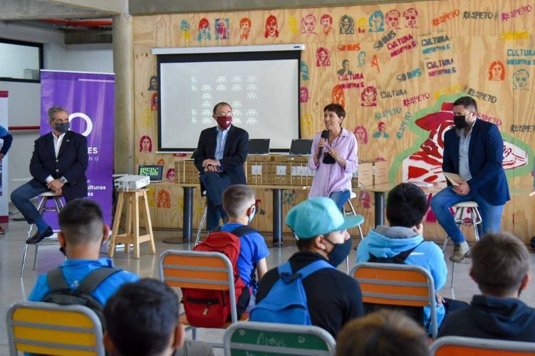 A su vez, la directora de la institución, Débora Schneider, agradeció al Gobierno Municipal y aseguró: “Para nosotros esta entrega es fundamental, porque el año pasado nos dimos cuenta de que se necesitaba escuela en todos lados: en las casas, en los barrios, en los centros comunitarios. Entonces, tener esas computadoras nos permite aprender donde sea y donde estemos; y no solo aprender lo que dicen las profesores y profesores, que es fundamental, sino también de lo que otros publican; de lo que nosotros mismos podemos producir y poner a disposición de los demás.