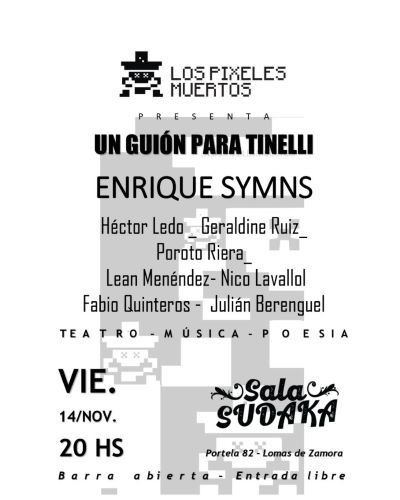 El próximo viernes 14 en la Sala Sudaka (Portela 82, Lomas de Zamora) desde las 20, se presenta la obra teatral inédita “Un guión para Tinelli” de Enrique Symns, monologuista de Los Redondos, periodista, un cultor de la crónica urbana y creador de la mítica revista Cerdos & Peces. La obra editada por Los Pixeles Muertos, se trata del primer libro póstumo del escritor y periodista argentino. Su puesta en escena había sido estrenada en 2006 con mucho éxito, pero cuyo texto no era conocido por los lectores.