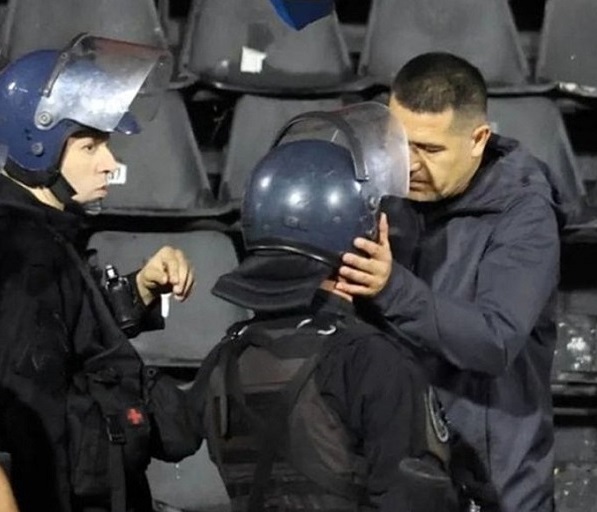 En un hecho para destacar el que apareció para contener fue el propio presidente de Boca Juniors, el presidente de Boca Juniors en la primera línea de fuego. Bajó para calmar las aguas, para frenar a los hinchas que ya se enfrentaban con la policía cuerpo a cuerpo y tirando proyectiles.